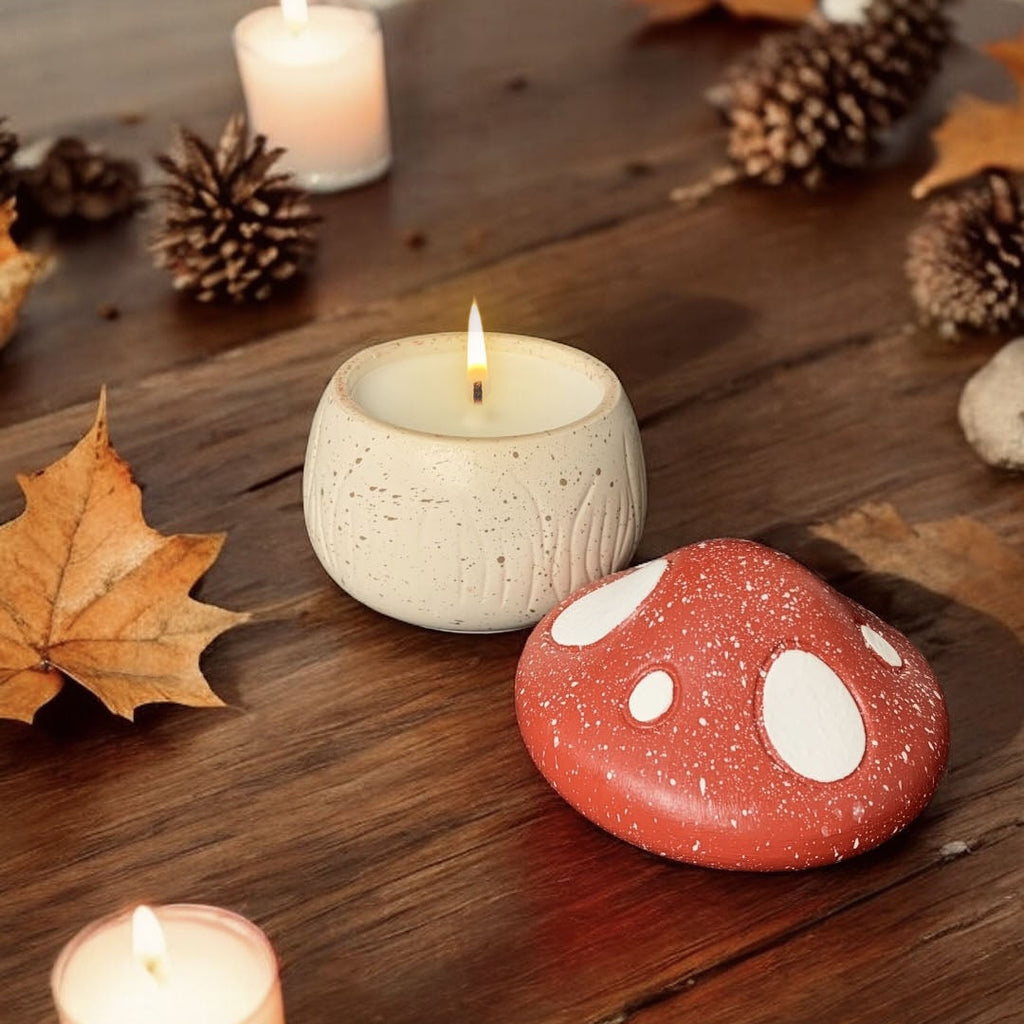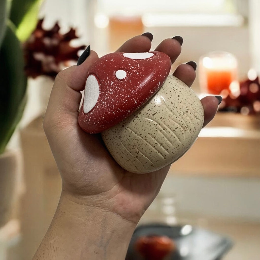 Apresento a você Mushroom, nossa vela aromática mais fofa que é acondicionada em um lindo potinho em formato de cogumelo, que tem acabamento pintado a mão e é produzido a partir de um blend especial de cargas minerais que promovem resistência e durabilidade a peça.